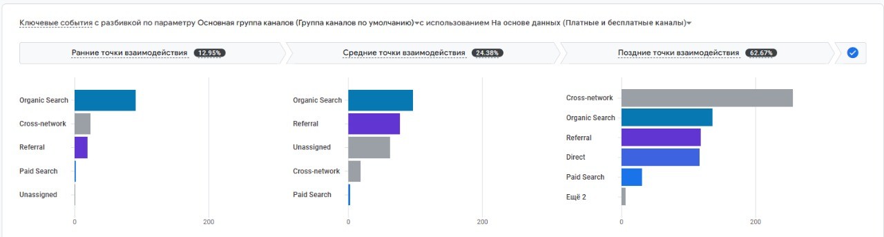В GA4 можно настроить отчет «Пути конверсии», который показывает всю цепочку взаимодействий пользователя до целевого действия. Это помогает оценить вклад медийной рекламы в принятие решения о покупке.