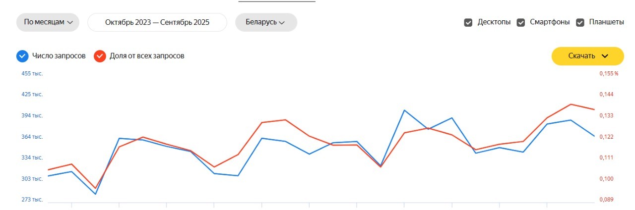 - Яндекс.Wordstat помогает отслеживать динамику поисковых запросов по бренду при изменении рекламной стратегии