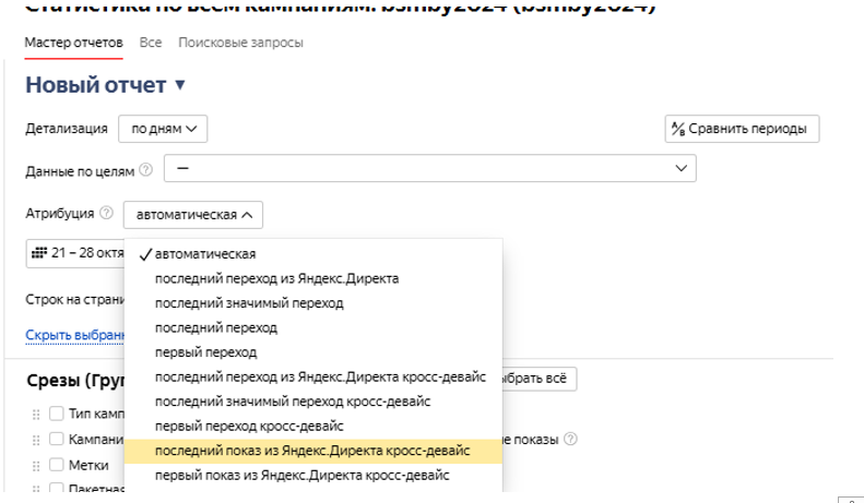 Через Мастер отчетов в Яндекс.Директе можно настроить различные модели атрибуции и проанализировать:- Конверсии после кликов по медийной рекламе