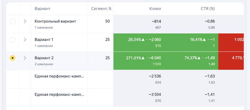 Варианты рекламных кампаний Разделите аудиторию поровну и убедитесь, что бюджеты пропорциональны выборкам. При необходимости добавьте корректировки, например, для проверки разных ставок в одной кампании.