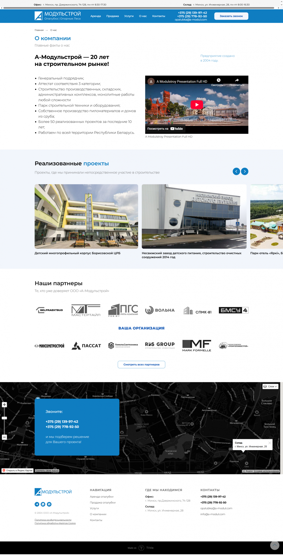 Перед стартом разработки мы подготовили и согласовали с клиентом стилистику сайта (цветовая схема) и структуру основных страниц (прототипы). Дизайнер создал прототипы в Figma, после чего страницы были сверстаны и настроены непосредственно в Tilda.